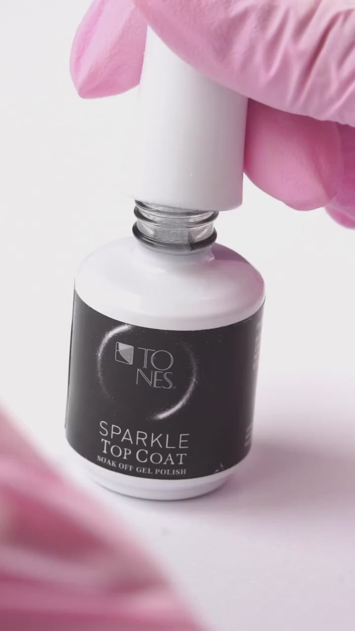 Our Sparkle Gel Polish Top Coat is the perfect way to add a touch of sparkle to your nail designs without the mess of loose glitter. Its high-quality formula not only enhances the beauty of your manicure but also protects it by sealing in color and adding strength. Whether you're preparing for a special occasion or just want to add some shimmer to your everyday look, this top coat delivers a professional finish that lasts.
