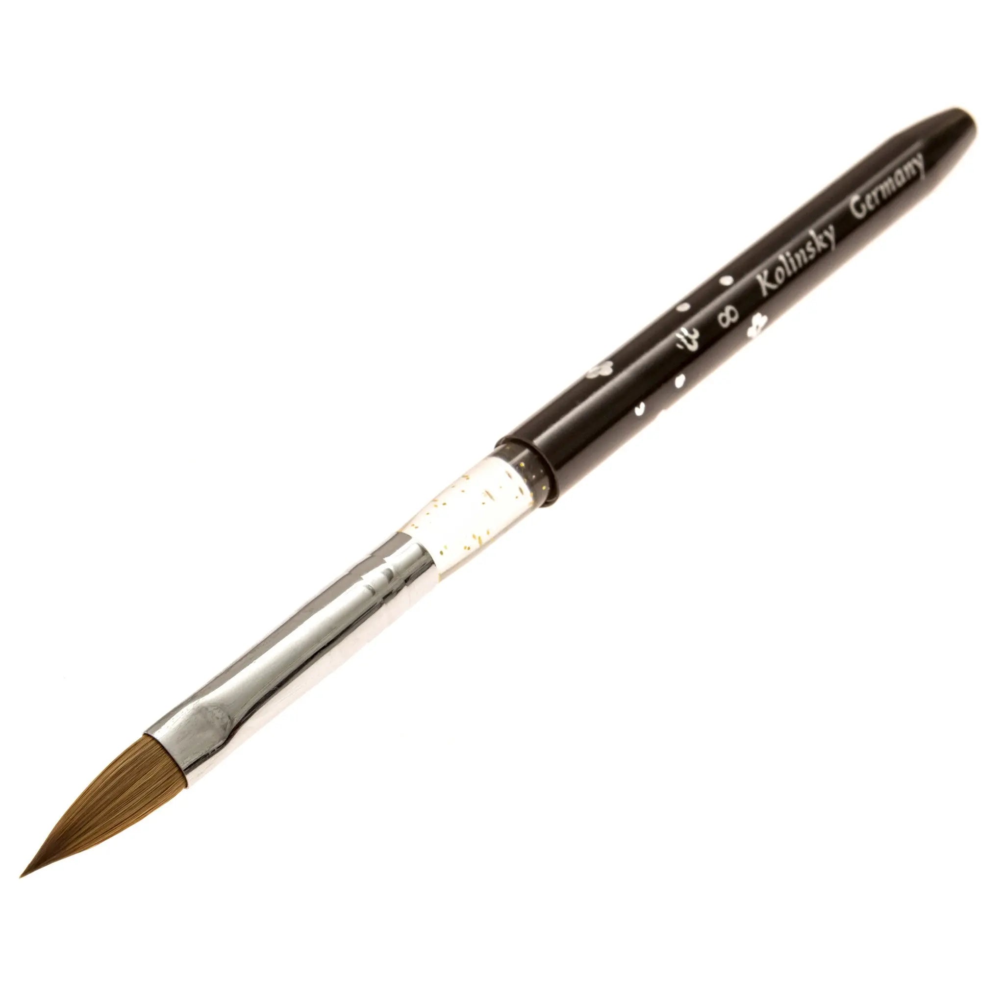 - Pelo Kolinsky de primera calidad: hecho de marta Kolinsky de alta calidad, reconocida por su excepcional capacidad para retener y distribuir uniformemente los acrílicos, asegurando una aplicación suave y precisa en cada pasada.